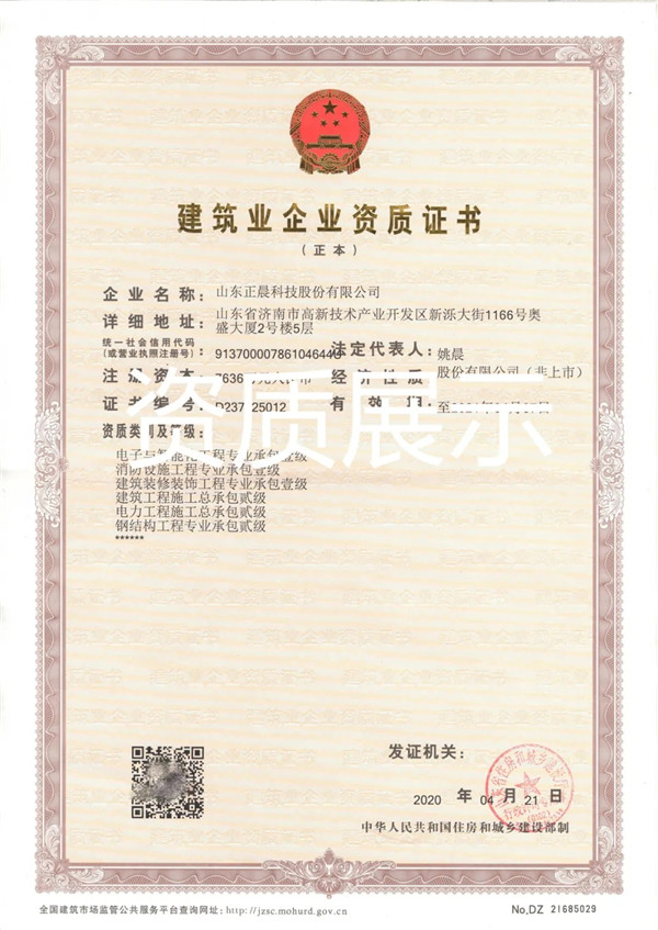 建筑工程施工总承包贰级资质的取得,标志着半岛集团官网_半岛online(中国)公司可承担高度100米以下的工业、民用建筑工程及高度120米以下的构筑物工程、建筑面积15万平方米以下、单跨跨度39 米以下的建筑工程的施工。大大增强了半岛集团官网_半岛online(中国)公司在房建市场的竞争力,为拓展房建市场提供了先决条件。