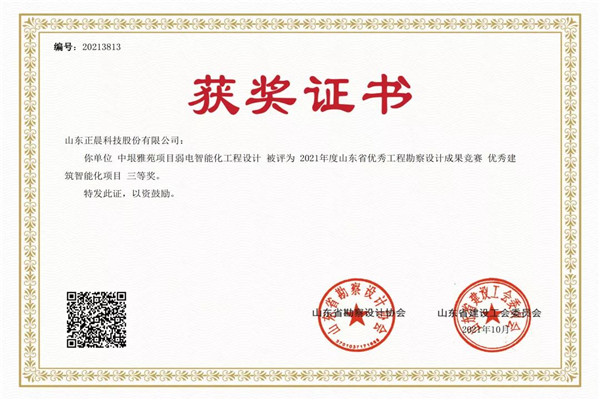 近日,山东省勘察设计协会、山东省建设工会公布的《2021年度山东省优秀工程勘察设计成果竞赛结果的通知》中,半岛集团官网_半岛online(中国)股份设计的中垠雅苑弱电智能化项目获评优秀建筑智能化项目三等奖,有力的助推了城市勘察设计水平的提升及城市建筑品质的优化。