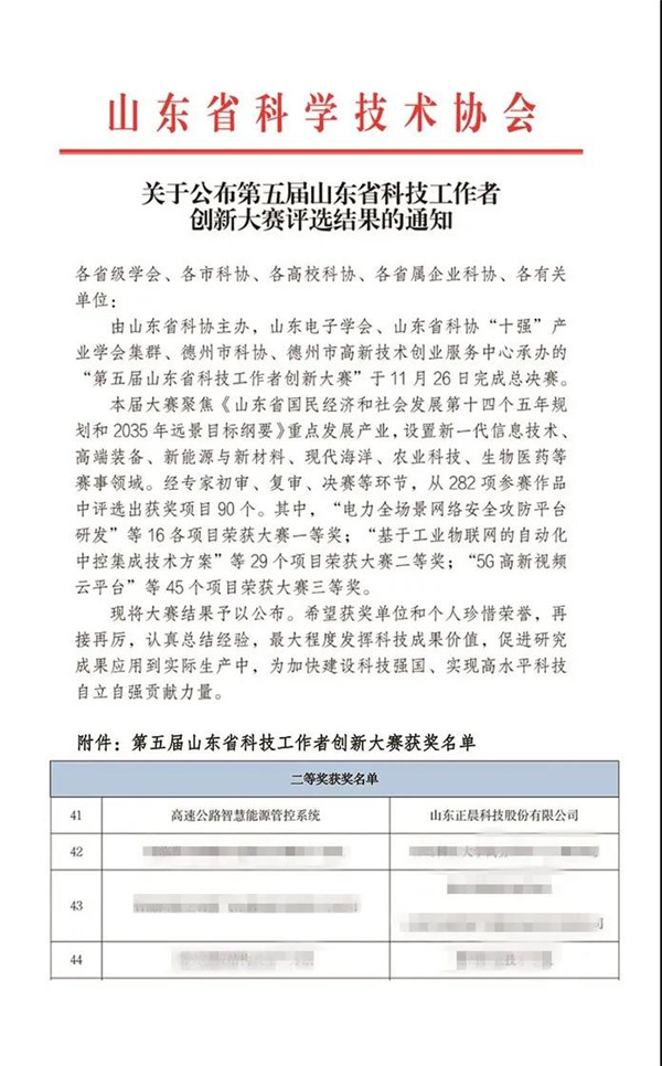 近日,山东省科学技术协会公布了第五届山东省科技工作者创新大赛评选结果,半岛集团官网_半岛online(中国)《高速公路智慧能源管控系统》荣获山东省科技工作者创新大赛二等奖!
