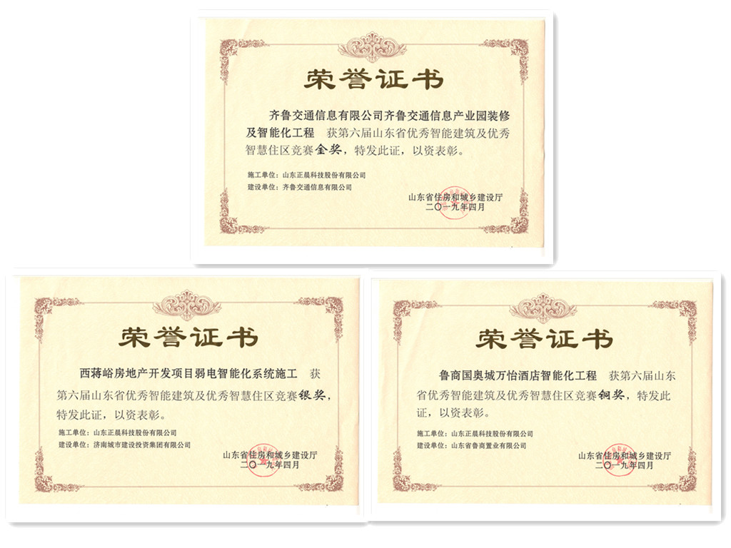 山东半岛集团官网_半岛online(中国)作为参赛单位,本次共申报三个项目,最终全部斩获奖项,载誉归来。其中,申报的齐鲁交通信息有限公司齐鲁交通信息产业园装修及智能化工程获得大赛金奖,西蒋峪房地产开发项目弱电智能化系统施工获得大赛银奖,鲁商国奥城万怡酒店智能化工程获得大赛铜奖,最终获得了1金1银1铜的好成绩!